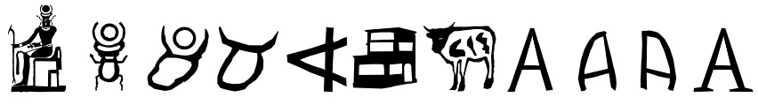 En cherchant l’équivalent dans la liste des signes Égyptiens, nous trouvons une autre tête signifiant que le matin se lève : un hiéroglyphe évoquant un bovidé : Apis. Le taureau est l’animal sacré associé au dieu Ptah, dans la mystique Égyptienne unifiée.