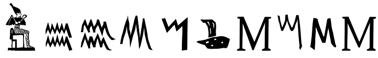 En Phénicien le « Mum » est le symbole pour l’eau, ce qui devient « Mim », l’eau en Araméen et en Nabatéen m. Si la forme graphique est éloignée, le sens symbolique est resté.
