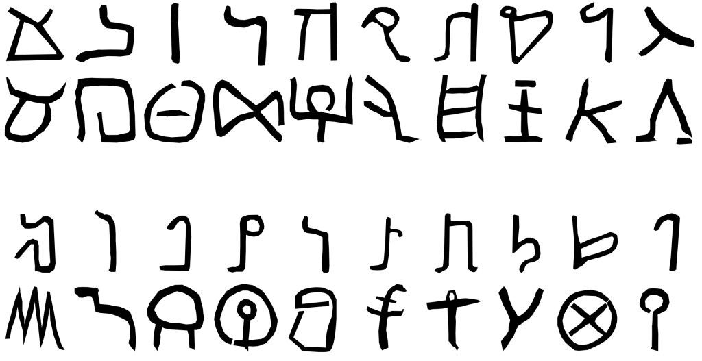 La juxtaposition avec le Proto-Cananéen fait apparaitre l’influence, possible mais non prouvée, de ce dernier sur deux caractères en particulier, l’Alaph qui ressemble vraiment à une tête de bovidé et le Bêth qui parait simplement pivoté par rapport à la graphie ancestrale.