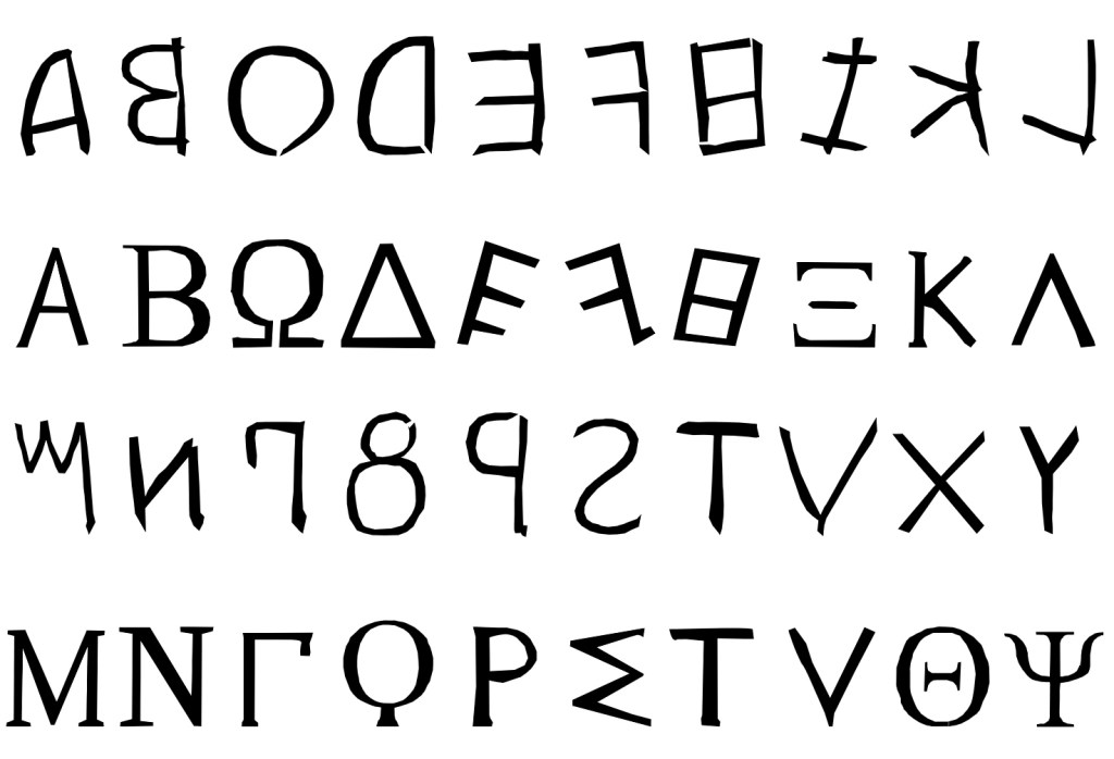 Les origines du Latin sont Grecques, c’est la filiation officielle telle qu’elle fut présentée par les grands auteurs. Pourtant nous allons consacrer un petit temps de réflexion à une variante intermédiaire de l’alphabet, qui précéda puis coexista avec le Latin.