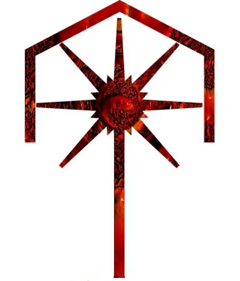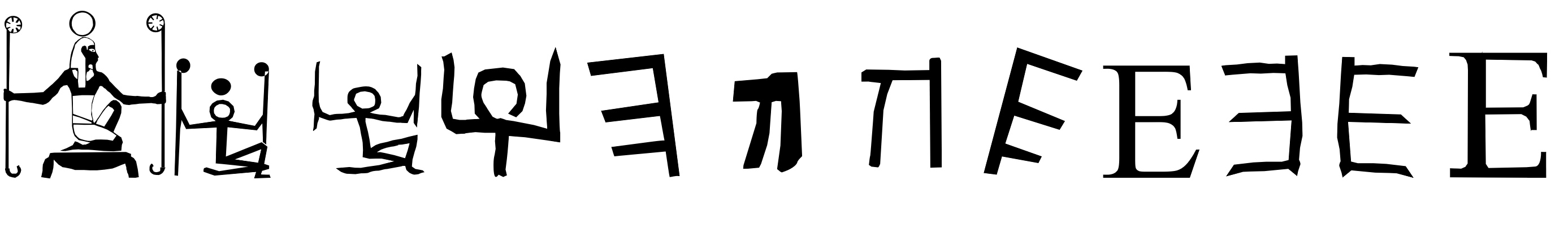Sa main est devenue la lettre et non sa coiffe, une couronne comportant sept branches, une par mot créateur, entourée de cornes royales. Il faut reconnaitre que cela n’aurait pas été facile à écrire.