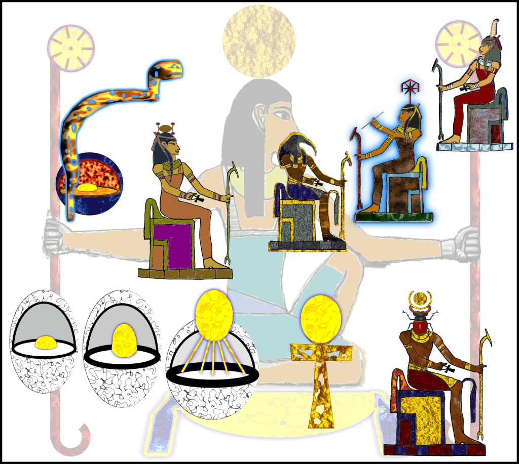 Ceci reste conceptuel, car au point où nous en sommes de la genèse Égyptienne, il manque une chose importante qui ne va pas tarder à arriver, l’émergence du principe de production du vivant, celui qui favorise la multiplication des êtres.