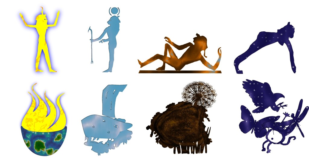 L’univers Heh, la création Montou, la parole Neith, l’intelligence Thôt, l’écriture Séshat, la justice Màat, la vie Anhk et la lumière Rà sont incarnées. Ces bases immuables, à peine interprétables, fixent le cadre de la pensée Égyptienne pour quelques millénaires.