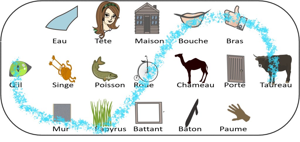 Avec le Phénicien, les noms de lettres étaient clairs et imagés. Cette technique facilitait l’apprentissage de l’alphabet, il y a fort longtemps, par celles et ceux qui en avaient un usage pressant pour gérer leurs affaires.