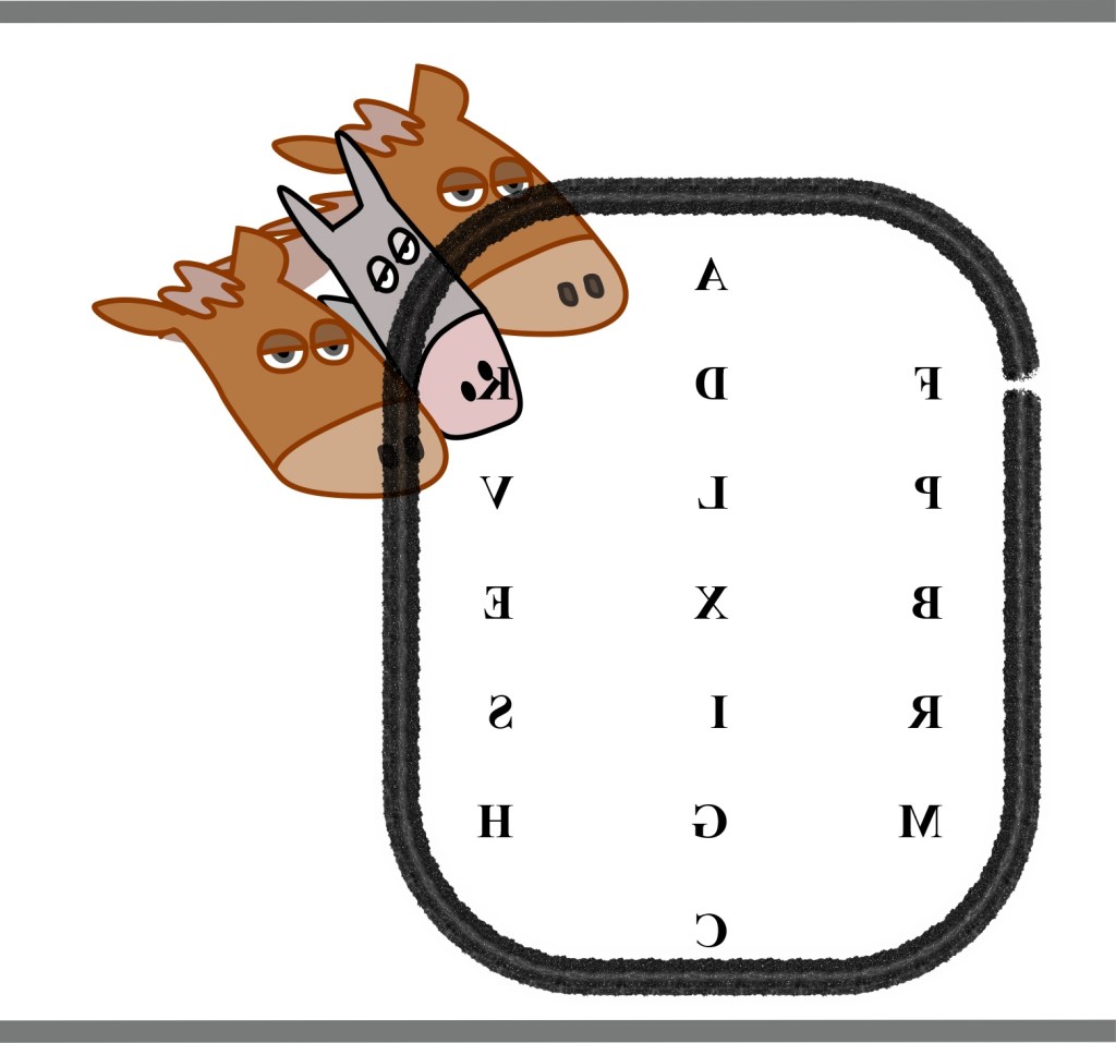 Toutefois, afin de préserver le plaisir de nous diriger dans le manège, ou l’illusion humaine du contrôle, nous nous servons des repères affichés, ces fameuses lettres, extraites de l’alphabet.