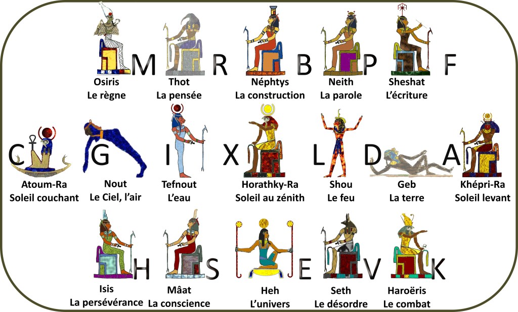En appliquant au manège contemporain les signes Egyptien ancestraux correspondant aux lettres, nous obtenons un disposition instructive. Au point que l’on va regarder d’un peu plus près ce que les chevaux étaient pour les Pharaons et comment et pourquoi ils auraient crée cet outil de formation.